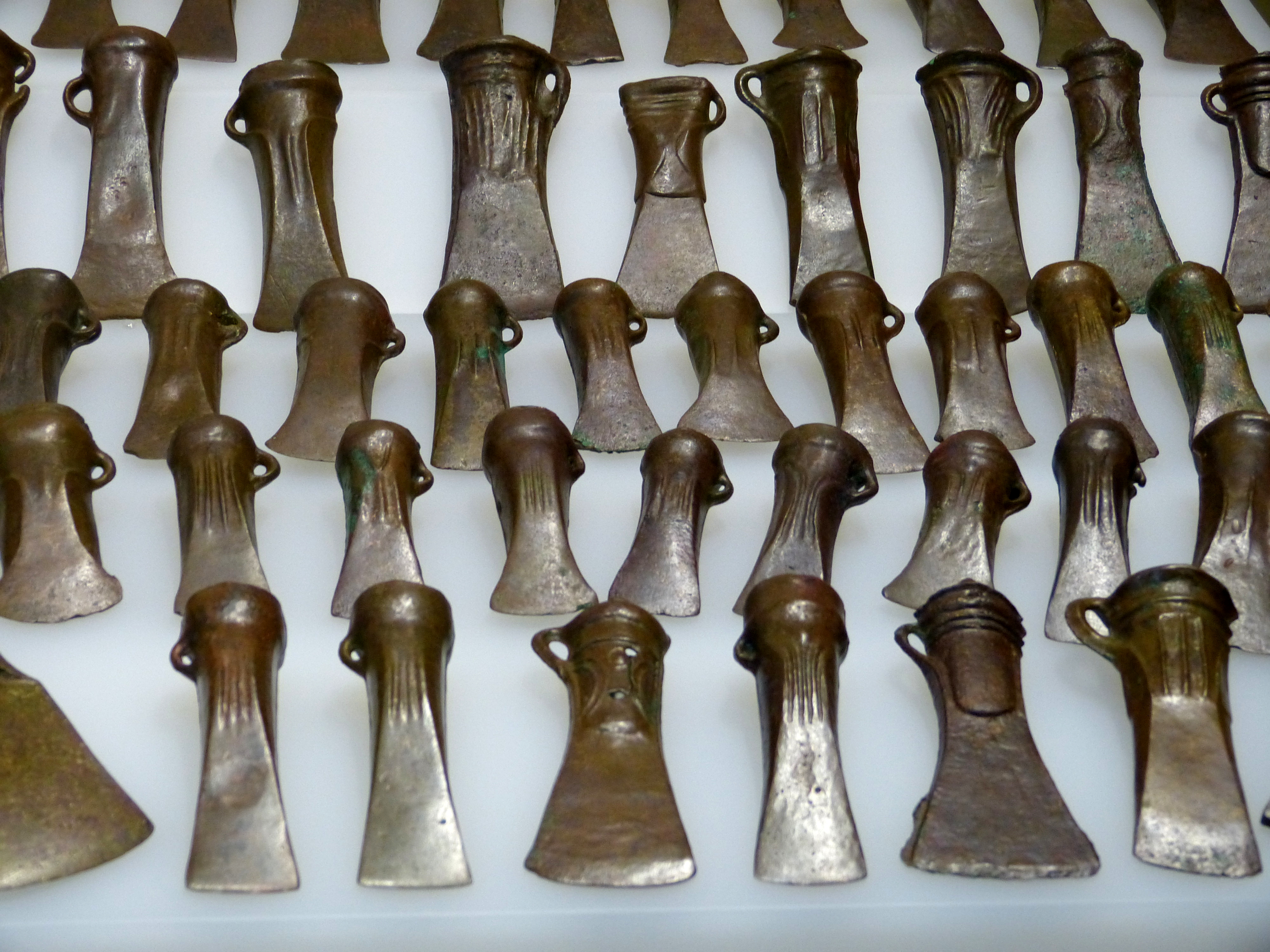 Век бронзы характеризуется наличием мечей как более длинных вариантов кинжалов, длину которых удалось увеличить благодаря крепости металла. Такие мечи обычно непривычно для современного глаза широкие, с утолщением у гарды или в середине листовидного клинка, и простой рукоятью с примитивной гардой или совсем без гарды. К антуражу бронзового века обычно относят и керамику, которая была изобретена примерно в тот же период: кубки, урны, вазы, амфоры и т. п. Мастерам, стремящимся к реалистичным историческим данженам, будет полезно знать разницу между длинным курганом (крытым коллективным погребением каменного века) и просто курганом или тумулусом (индивидуальным саркофагом с насыпью, более характерным для века бронзы и керамики).