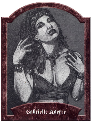Игромеханически в системе AD&D Габриэла Адерре — нейтрально-злая полу-вистани, волшебница (enchanter) 8 уровня.