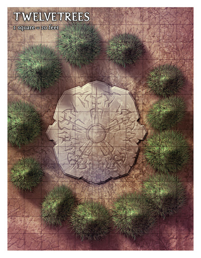 Дюжинадрев — это конечный (замкнутый сам на себя) слой. Небо этого слоя постоянно затянуто тучами и озаряется вспышками молний, а поверхность — это каменная пустошь, кроме двенадцати огромных сосен и верфей, на которых члены фракции Стражи Судьбы в сотрудничестве с демонами строят Корабли хаоса (магические корабли, способные перемещаться между слоями Бездны) и другие военные машины. Место жертвоприношения небожителей — базальтовая платформа, окружённая 12 деревьями — усиливает всю злую магию, потому постоянно привлекает пилигримов из числа танар’ри и служителей тёмных богов.
