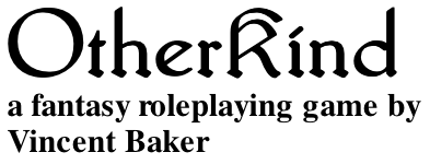 Характеристиками персонажа в Otherkind служат раса (принадлежность к одному из четырех чудесных народов), три умения персонажа (оружейное, социальное и произвольное), Аура (отражающая собранную и сохраненную Сказку) и Связь с Жизнью (помогающая творить соответствующие расе персонажа чудеса). При этом Связь с Жизнью может только убывать по мере произошедших по вине персонажа смертей, что отличает систему развития персонажа Otherkind от большинства «традиционных» ролевых систем. (В качестве источника вдохновения для этого решения автор упоминает механику Hell-shift из игры Тима Дини «Our Frustration»).