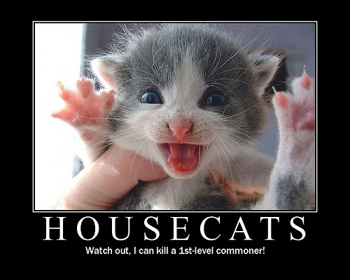 Из-за этого применение боевых правил к сражениям между существами, рассчитанными в первую очередь на роль «фона» порой выдаёт весьма странные результаты. Этот феномен получил название по попытке сравнить боевые качества крестьянина 1-го уровня и домашней кошки. Так как кошка обладает хорошим показателем ловкости, в бою она скорее всего будет ходить первой. Обладая тремя атаками (две атаки когтями и укус) и хорошим шансом попадания для своего уровня, кошка может нанести существенный урон крестьянину первым ходом и добить его вторым (размер даёт ей бонус к защите, так что нетренированный крестьянин имеет шанс менее 50 % попасть по кошке на своём ходу). Для персонажей игроков кошка практически не опасна, так как её атаки наносят минимально возможный урон, но класс крестьянина подразумевает немногим большее число хитов, чем у той же кошки.