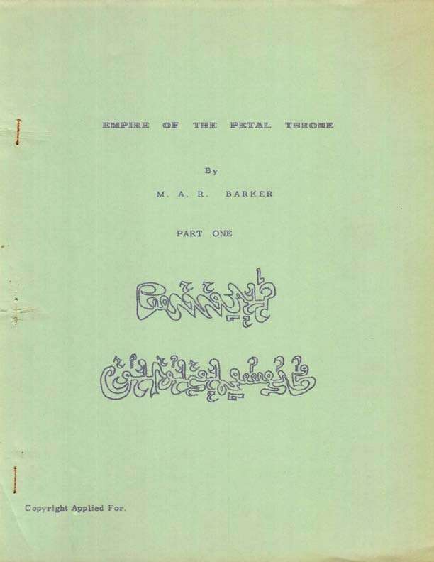 «Empire of the Petal Throne» — самостоятельно напечатанное тиражом в 50 экземпляров первое издание ролевой игры по сеттингу Текумель имело место весной 1974 года, вскоре после того, как Баркеру показали буклеты OD&D. В 2012 году один из этих экземпляров был найден, отсканирован, распознан и выложен на DriveThruRPG в виде 230-страничного PDF, в котором сканы расположены на нечётных страницах, а их читабельные и копируемые варианты — на чётных.