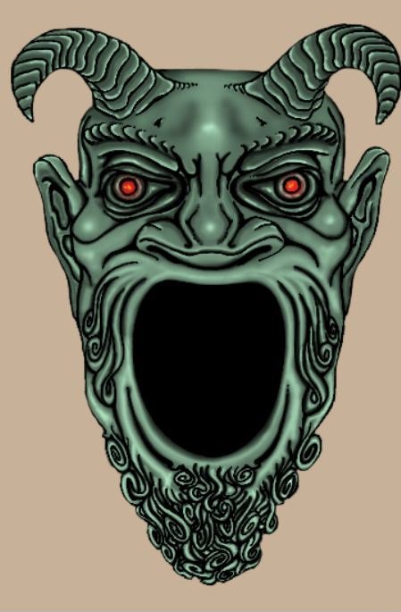 Зелёное дьявольское лицо — один из символов Могилы ужасов, закрепившийся за модулем позже и многократно встречающийся в отсылках к нему. Темнота в пасти скрывает сферу аннигиляции.